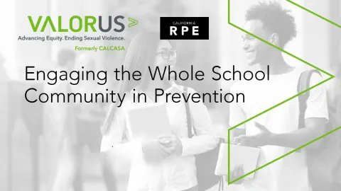 In order to successfully meet the essential elements of comprehensive school-based programs, prevention practitioners must obtain buy-in and build partnerships with the whole school community. Programs should serve as a trusted resource, identify champions and allies, pursue shared goals, and facilitate effective meetings to prevent violence and create a culture of consent on campus.